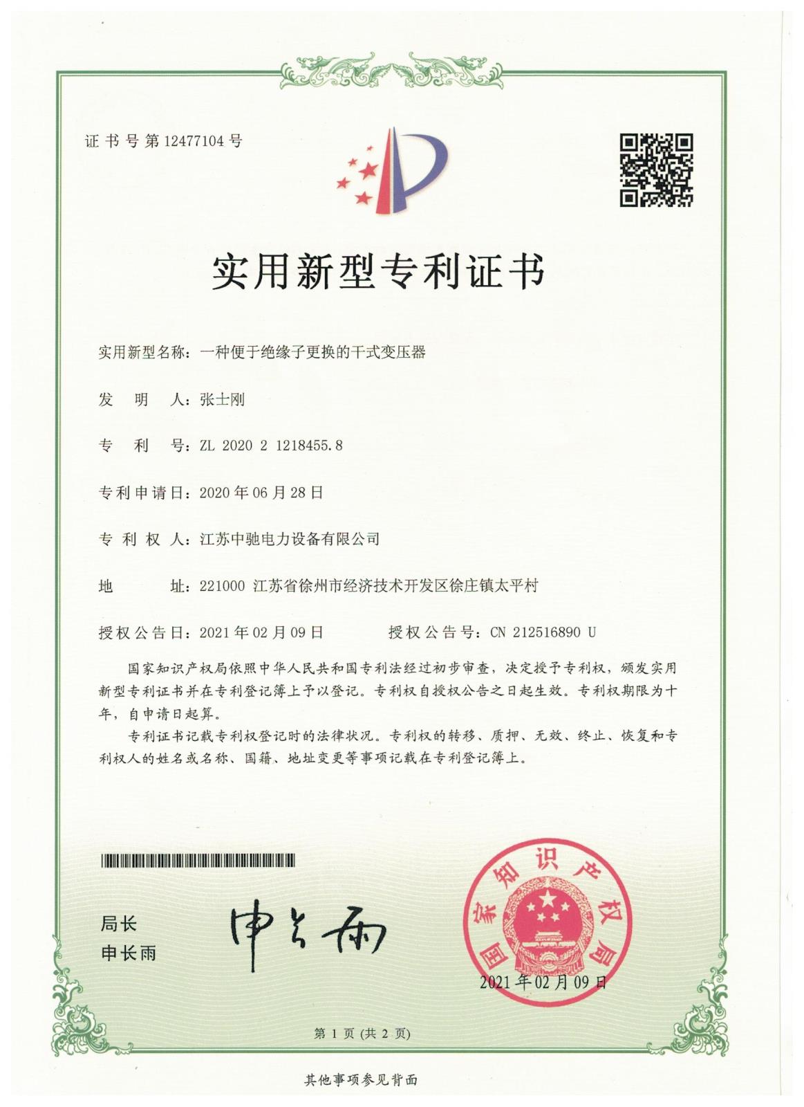 您所在的位置:首頁(yè) - 關(guān)于中馳 - 專利證書